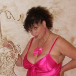 Mature wife Kim poses in sexy pink lingerie before stripping off and showing of her cracking bangers